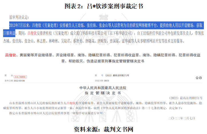 裁判文书网显示,2013年7月以来,吕*钦安排多人以营利为目的研发网络赌博平台,提供给他人用以开设赌场,获取巨额利益。