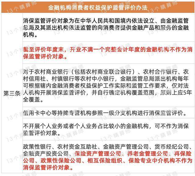 二是,此前开业不满2个会计年度的银行保险机构不参与评价,新办法则缩减至,不满1个完整会计年度的金融机构不参与评价。