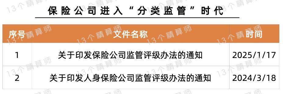 2025年年初,金融监管总局下发《保险公司监管评级办法》,标志着保险公司“分类监管”全面实施!