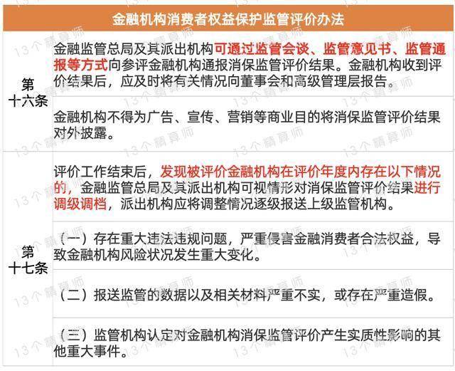 比如,消保监管评价为4级的机构,消保工作在行业中就属于处于落后水平,多次出现过侵害消费者权益的事件。