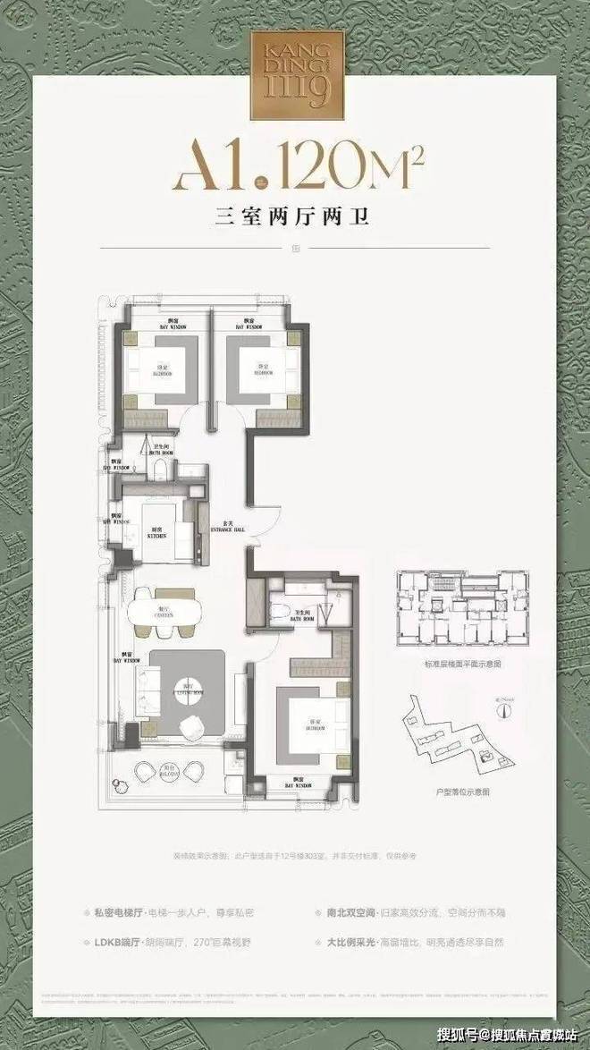 :为建面约 120-240㎡的三至四房,全社区一梯一户设计,得房率超 80%。